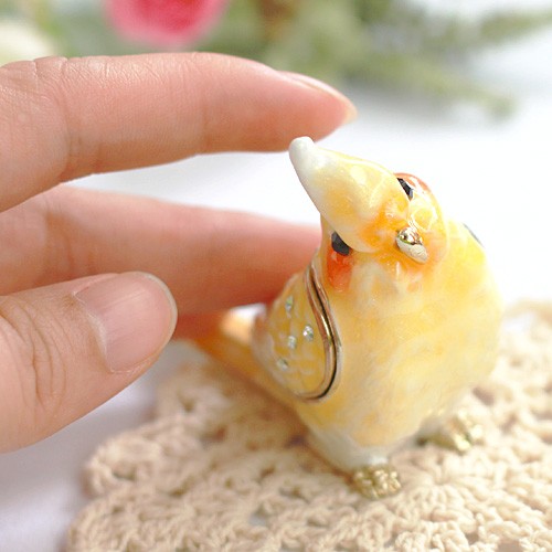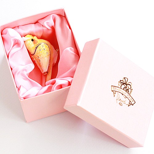 | ジュエリーボックスと言えば、指輪やピアス、ネックレスなどのアクセサリーを入れる引き出し型のケースを思い浮かべる方が多いかもしれません。 ピィアースのジュエリーボックスは、動物や花などをモチーフに作られ、合金製でずっしりとした重さがあります。また高品質のクリスタルガラスを贅沢に使用。まるでジュエリーボックスそのものが宝石のような、高級感溢れる仕上がりです。 小物入れとしても使えるように開閉口には磁石が取り付けてあり、アクセサリーなどなくしやすいアイテムの収納ができます。キラキラと美しく輝く宝石箱は、そのまま飾って楽しめるインテリア雑貨として多くの方に愛されています。 国内トップクラスのジュエリーボックスメーカーであるピィアースは、2004年ごろから本格的に宝石箱の製造を始め、現在のジュエリーボックスはなんと300種類以上。大規模展示会でもご好評いただいており、全国有名百貨店でも販売されています。 自社工場でひとつひとつ丁寧に手作りし、原型作成、研磨、加工、着色、小さなクリスタルガラスの取り付けなども全て手作業で行われるこだわりのハンドメイド品。完成後は厳しい検品の後、丁寧に梱包作業をしお客様にお届けしております。 ピィアース商品は、全国有名百貨店および全国有名宝石店チェーンにてお取り扱いいただいている高品質商品です。 ★自分へのご褒美に…コレクションして並べて飾ると、さらにかわいらしさUP! ★恋人へのプレゼント…中にアクセサリーを入れて、サプライズな贈り物として ★家族への感謝ギフト…お母さんや姉妹へ、日頃のありがとうの気持ちを込めて ★誕生日プレゼント…お友達の喜ぶ顔が見たいから、いつもと違うキラキラギフトを ★小さな女の子へ…まるでお姫様が使っているようなキラキラ宝石箱は女の子の憧れ! |