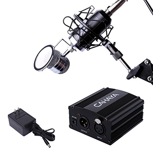 -. Title : Condenser Microphone Cahaya Studio Microphone with 3.5mm XLR Cable Pop Filter Shock Support and 48V Phantom Power for Recording Studio Broadcast (Black)