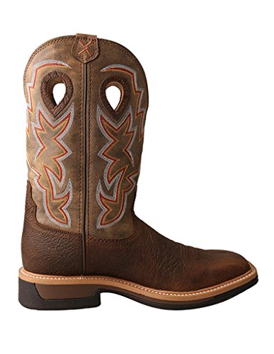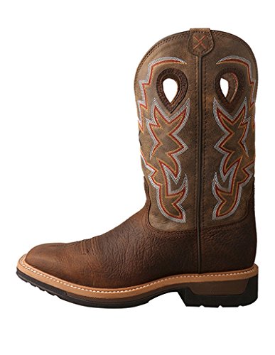 Studio : Twisted X Publisher : Twisted X Binding : Misc. Product Description Mens Twisted X Work Boots: Mens Western Work Boots. The latest technology and modern designs are just a couple of reasons Twisted X work boots are a great fit for you. These men's lite Cowboy Work Boots from Twisted X'S Red Buckle collection are made from genuine leather and have a vibrant western stitching and teardrop pull holes on the shaft. These striking men's work boots feature a protective alloy toe, a block heel, a wide square toe and are also built to be comfortable and with moisture-wicking Twisted X Technology Cowboy Comfort footbeds. Look awesome when you step out onto the ranch or onto the jobsite in these Twisted X Cowboy Boots. The alloy toe meets all the requirements of the steel toe but is 1/3 less weight. The genuine super slab rubber outsoles are slip resistant and oil resistant. Twisted X run a half size large, order a half size smaller than normal. 12" shaft. MLCA001 0