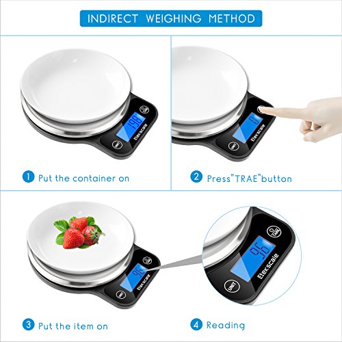 Food Scale Kitchen Digital Scale with Blue Backlit LCD Range From 0.04oz (1g) to 11lbs(5000g) in Elegant Black
