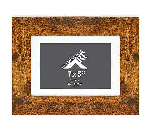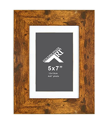 Golden State Art,5x7 Frame for 4x6 Photo with White Mat, Table-Top Easel Stand, & Real Glass (Dark Walnut Brown - Vertical + Horizontal)