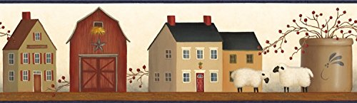 -. Title : Chesapeake AA108141B American Folk Art Shaker Village on Shelf Wallpaper Border