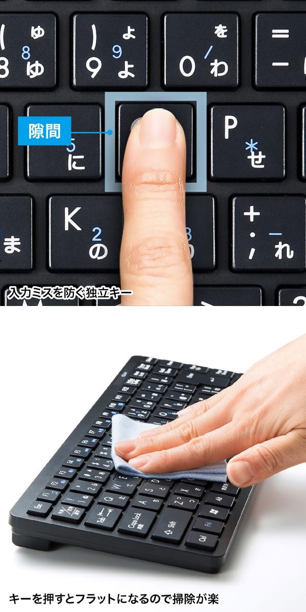 | 誤入力を減らすアイソレーションタイプのワイヤレスキーボード。 |