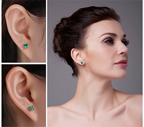 Jewelrypalace 0.86ct Taube Blut Rot Prinzess Neu Platz Synthetisch Rubin Saphir Smaragd Ohrstecker Ohrring Damen 925 Sterling Silber