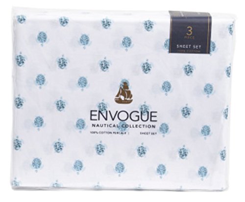 - Envogue Nautical Four (4)-Piece Tortuga Sea Turtle Blue and White Coastal Cotton Sheet Set