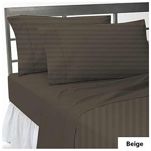 Fits upto 25 Inches Deep Pocket 1 Flat Sheet +1 Fitted Sheet & 2 Pillowcases 400 Thread Count Stripe Pattern 100% Egyptian Cotton ( Queen , Beige )