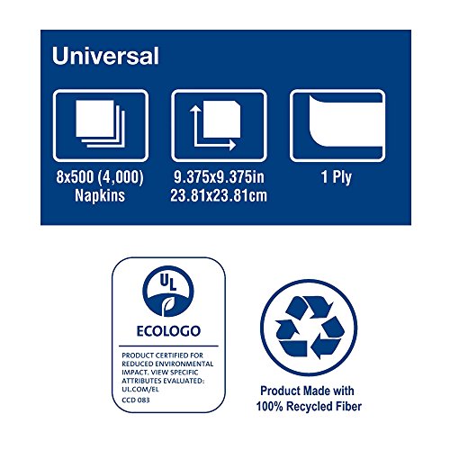 Studio : SCA Americas LLC, us biss, SCAH2 Publisher : SCA Americas LLC, us biss, SCAH2 Binding : Misc. Product Description This Tork Universal Dispenser Napkins embossing and semi-crepe texture gives a quality feel. Identical folded size to full size dispenser napkins provides an open size of 5" shorter making it a big cost savings. Bag packaging ensures superior product quality while protecting unused napkins. Always fresh and sanitary. Made from 100% recycled and 20% Post Consumer fibers offers environmental benefits, a positive image builder and is compostable. ECOLOGO Certified. Compostable Verified by BPI and Independent Verification. 0