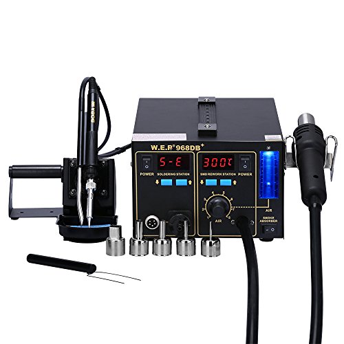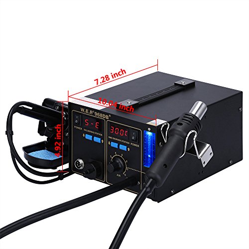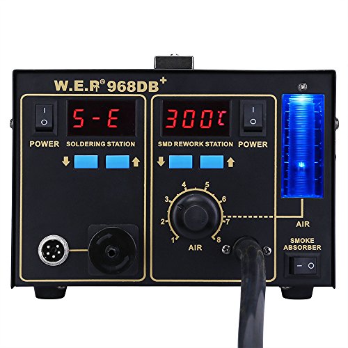 KEDSUM 3 -1 968DB+ Digital Display Soldering Station, Rework Station Hot Air Gun with Smoke Absorber& Soldering Iron, with Celsius /Fahrenheit Display Temperature Function and Air volume Window