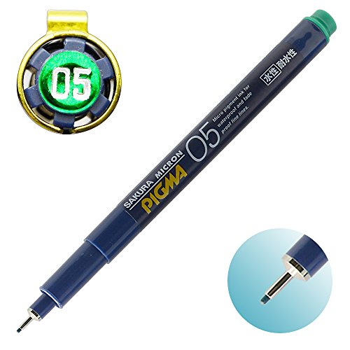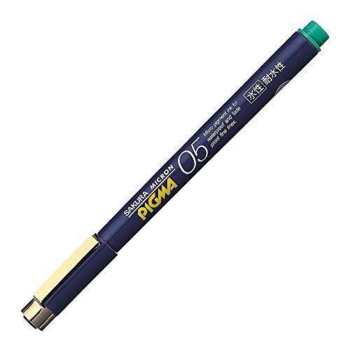 -. Feature : Sakura pigment ink pen, pigma micron 05 green / Model-ESDK05#29 / Water base pigment color pen from Japanese stationary Brand sakura cray-pas, pigma Series