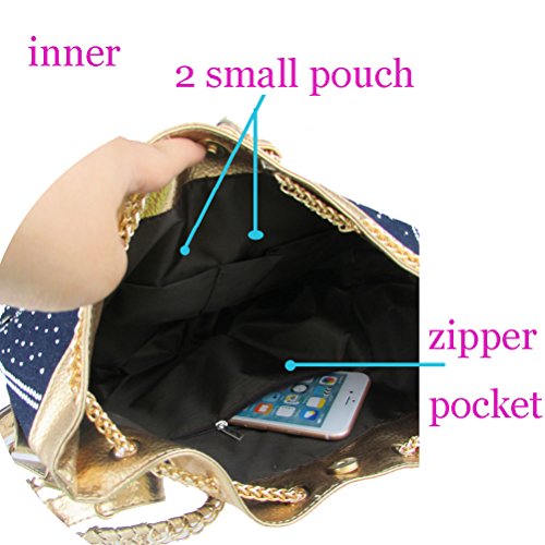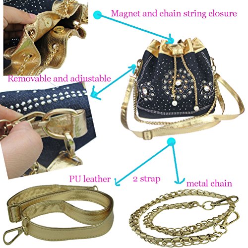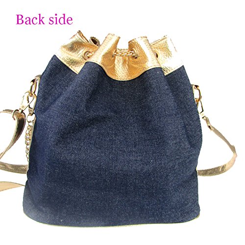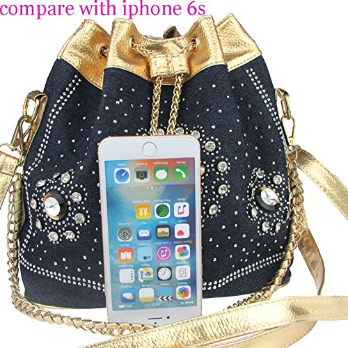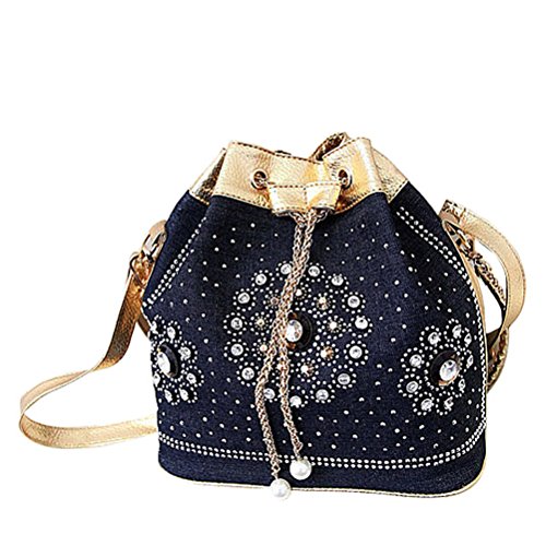 Donalworld Women's Silt Pocket Chains Bucket Diamonds Denim Messenger Handbag