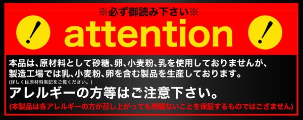 ご注意 本品製造工場では乳、小麦粉、卵を含む製品を生産しております。