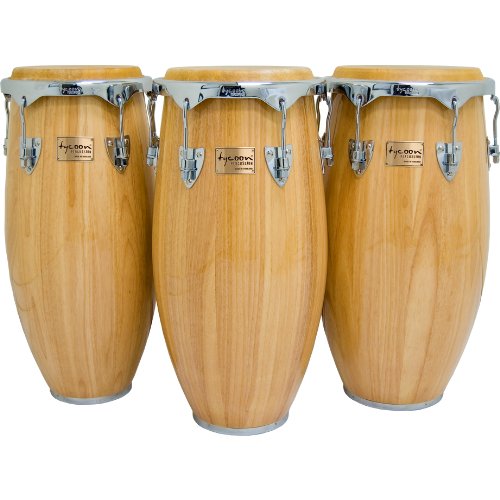 ReleaseDate : 2009-09-23 Studio : Tycoon Percussion Publisher : Tycoon Percussion Binding : Electronics Product Description Tycoon Percussion's Concerto Series Congas are constructed of carefully selected aged Siam Oak with a unique shape featuring a lower wide belly for rich bass tones and crisp highs. Super high gloss lacquer over two stunning finishes protects the drum and looks great on stage. Their wide and deep tuning range with water buffalo skin heads are perfect for live or studio use. Basket stands are included. Bags and Tycoon Percussion's rubber conga protectors are also available. Available in four sizes: 10”, 11”, 11.75”, 12.50”. 0