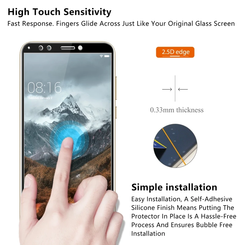 Bubble-Free Adhesives for easy installation and no residue when be removed. Hydrophobic and Oleophobic screen