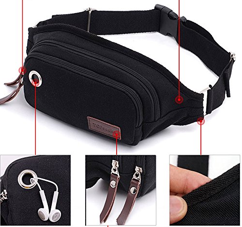 Big Mango Fashion Sports Big Capacity Multi-purpose Waist Bag Fanny Pack Chest Pack with Adjustable Belt 66-110cm & Data Wire Hole for Iphone Samsung Galaxy HTC MP3 Key Photo Pocket Money Credentials Makeup and Automatic Umbrella (Black)