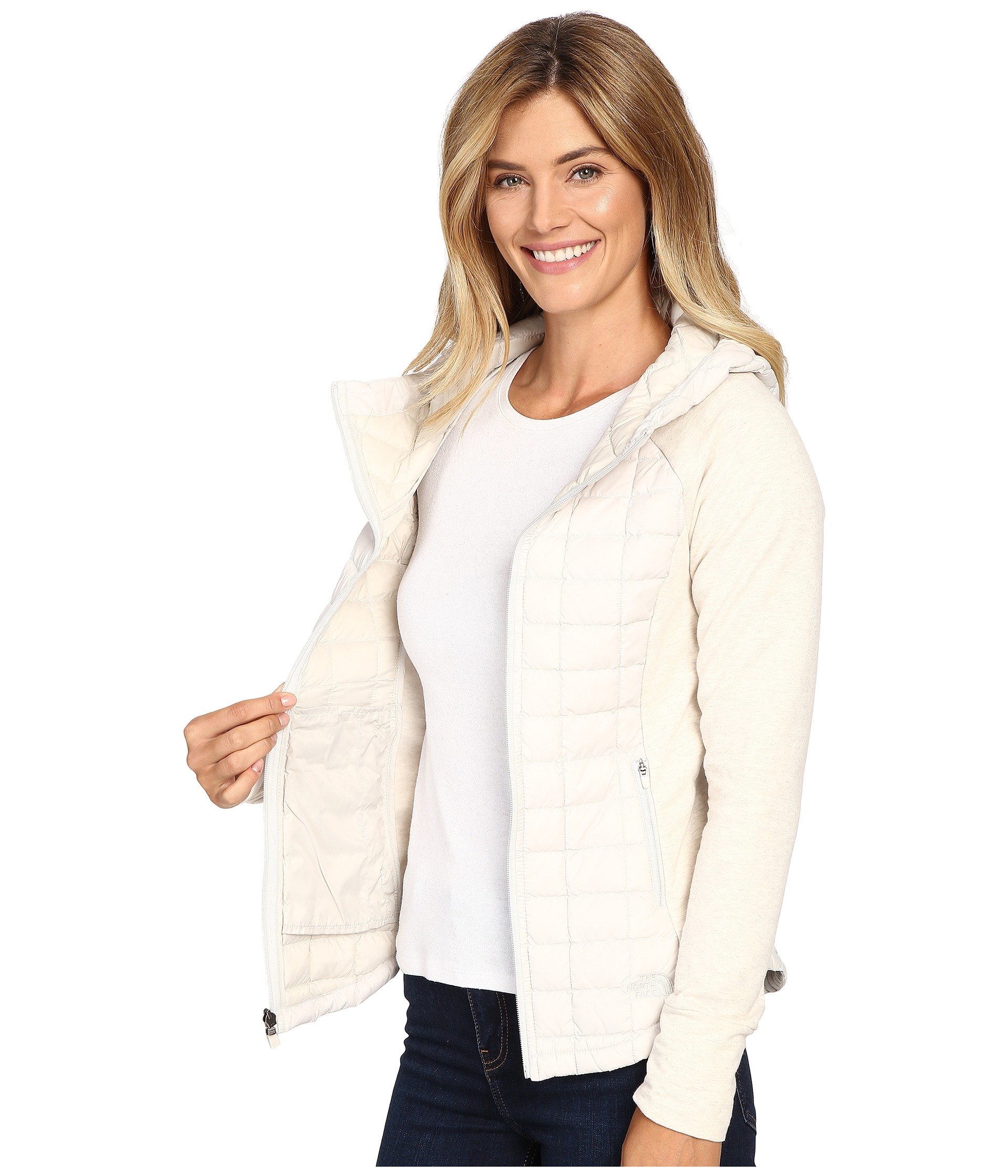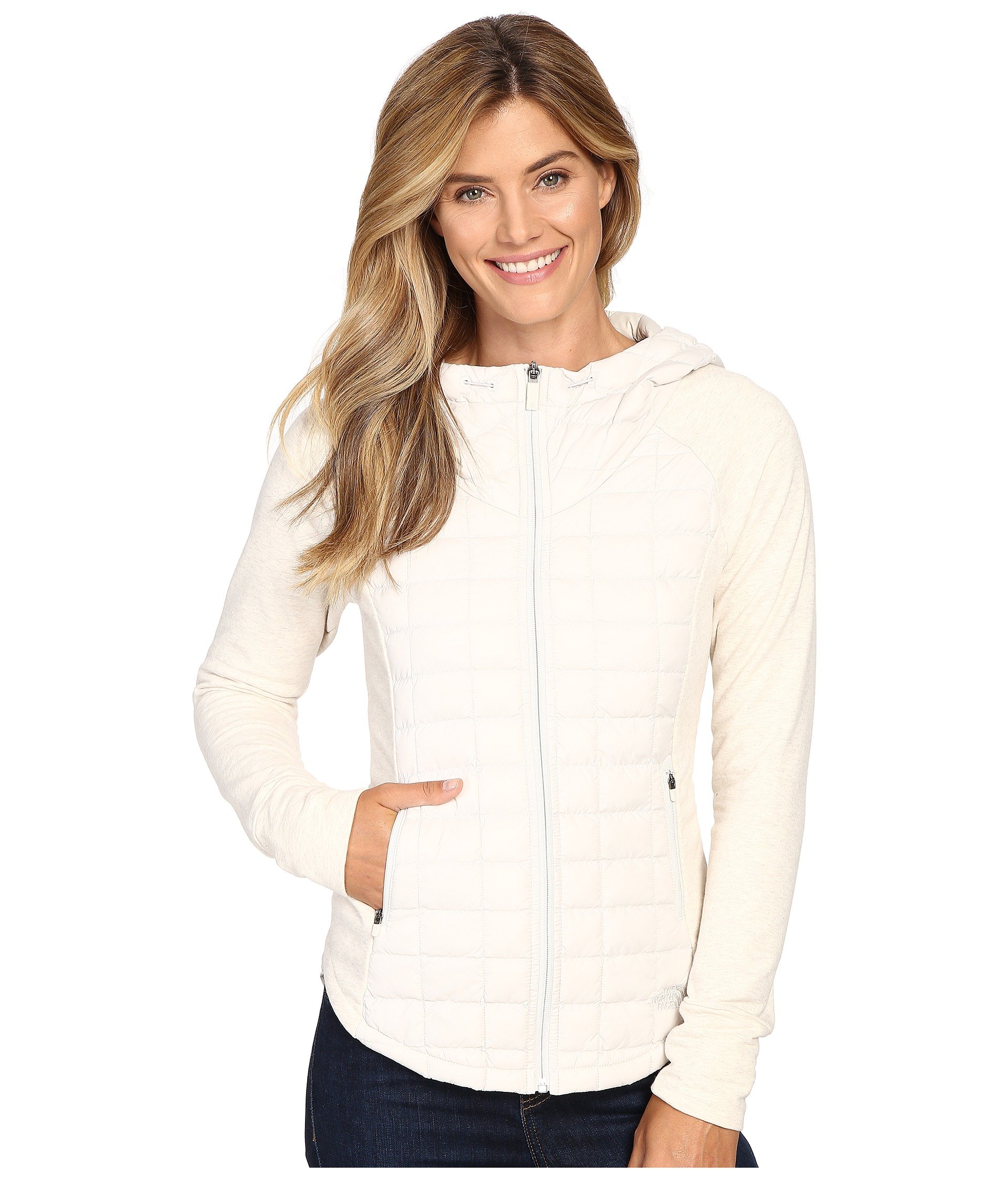 | Product Information SKU: #8700541Please note that this style is either discontinued and/or from a previous season.This new packable jacket is a sleek hybrid of two different insulation types that can easily retain heat in chilly conditions.Hybrid-mapped shell: ? Hybrid-mapped design places performance fabrics where they can be of most use. ? Smooth taffeta shell through the body and hood glides easily under top layers. ? Square-quilted design places insulation through the core. ? Heathered, brushed back fleece panels at the sleeves and sides. ? Breathable, stretch fabrics improve range of motion. ? Taffeta: 60 g/m² fabric weight. ? Fleece: 250 g/m² fabric weight.PrimaLoft? ThermoBall™ insulation ? Round bunches of PrimaLoft synthetic insulation are designed to mimic the high warmth and low loft of natural down clusters. ? Breathable, water-resistant design improves passage of moisture vapor from perspiration without taking on extra weight. ? Lightweight and highly compressible for easy packing. ? Synthetic fibers retain insulating properties even when wet. ? Independently CLO-tested to imitate 600 fill-power insulation.Attached, three-piece hood with adjustable drawstring.Full-length zip.Raglan sleeves.Extended banded cuffs.Zip hand pockets.Gathered elastic back panel cinches the silhouette.Shirttail hemline.Tonal logo embroidery at the left hip.Shell and Lining: 100% nylon; Panels: 84% cotton, 11% polyester, 5% spandex; Insulation: 100% polyester.Machine wash and tumble dry.Imported.Product measurements were taken using size XS. Please note that measurements may vary by size.Measurements: Length: 26 in |
