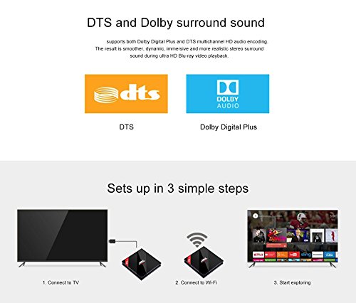 -. Feature : 3G RAM and 16G ROM , H96 Pro+ TV Box is powered by Amlogic S912, the latest most powerful 8 Core CPU performance for Network Set-top Box. Full Octa core Cortex-A53 bits, up to 2.0GHZ Ultra high frequency, Provide home theater and gaming experiences / Professional H.265 video decoding technology and WIFI 2.4GHZ and 5.8GHZ, offering a more stable WIFI signal to enjoy a higher quality video experience! / KODI 16.1 is pre-loaded,can updated to XBMC KODI 17.0 version.New visual & more attractive UI, more convenient Wifi & BT Setting, Android 6.0 OS ,It allows you to download numerous add-ons,like Youtube, Exodus,Netflix, Facebook, Twitter, Skype,etc Install your favorite apps and enjoy advanced technology / H96 Pro+ TV box easy connection and simple operation.Have HDMI, USB, SPDIF, AV Port, Dual WiFi and bluetooth function . Bluetooth 4.1 vision,you can connect to mobile device. It supports 2.4GHz/5.8GHz Wifi connection, can download the apps onlines, watching video, playing games and so on / 4K 60fps display, 4K x 2K H.265 hardware video decode and 4K x 2K output with 10/100/1000Mbps cable network, offering you high definition picture and fluently video playing. It's compatible better with your HD 4K home TV