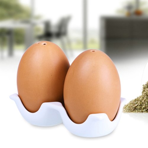 Brown Egg Design Salt and Pepper Shaker Set w/ Egg Carton Style Holder - MyGift
