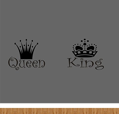 22*10 Inches Queen King Black Lettering Art Front Male and Female Crowns Vinyl Wall Decals Removable Wall Decors Home Art Wall Stickers for Bedroom