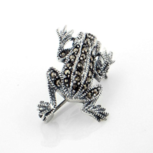 -. Title : Sterling Silver Marcasite Frog Lapel Pin or Brooch