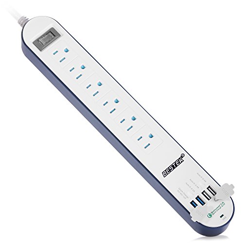 [Quick Charge 2.0] BESTEK 6-Outlet Surge Protector Power Strip with 6-Foot Extension Cord and 4 USB Ports (Blue)