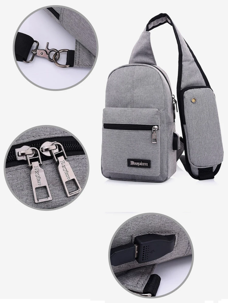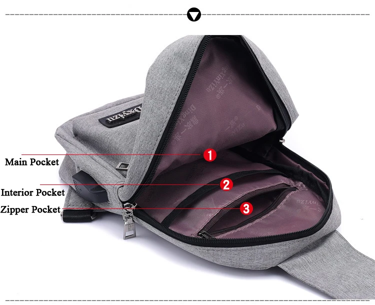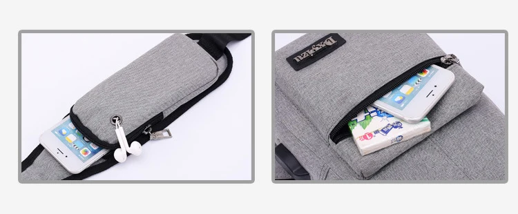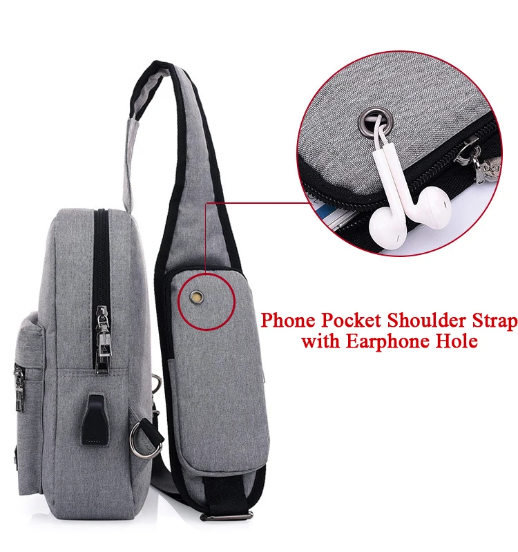 Features:Multi Compartments, USB Charging, Earphone Hole