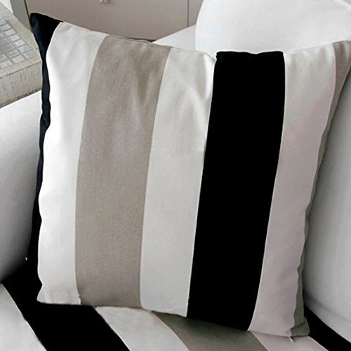 TAOSON Black Brown White Stripe Pattern 100% Cotton Canvas Throw Pillow Case Decor Cushion Cover Pillow Cover Pillowcase with Hidden Zipper Closure Only Cover No Insert 18x18 Inch 45x45cm