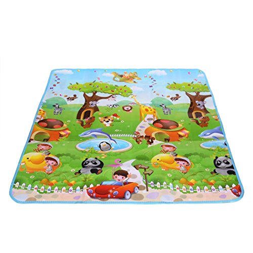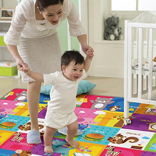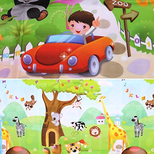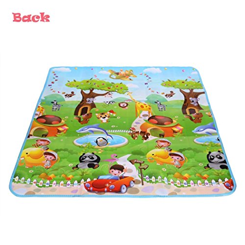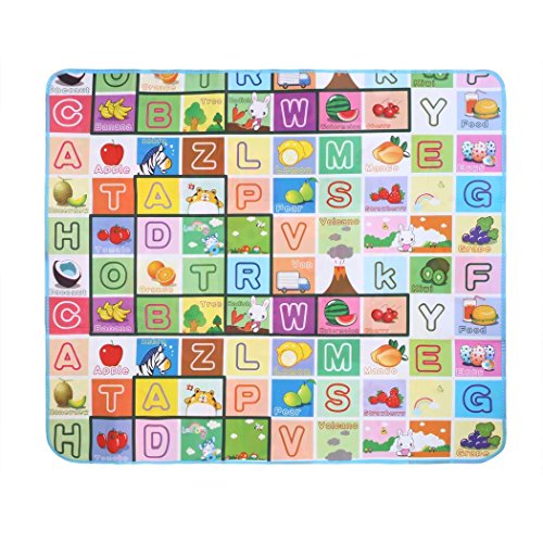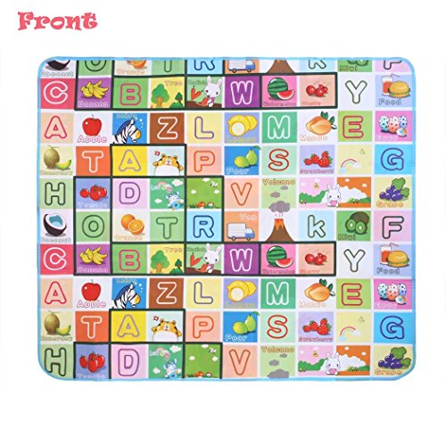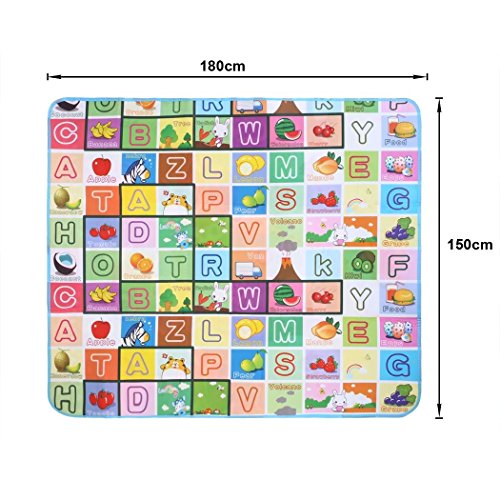-. Feature : High Quality Material: Surface material: OPP Preservative Film. Middle Level Material: PE Cotton, waterproof material and very easy to clean, soft, durable and fold easily. / Hygienic and Safe: Large and comfortable baby mat, thick enough and don't hurt baby's skin, easy to wash and fold, hygienic, save space as well. / Size: 70.2 x 58.5 x 0.2inch/180 x 150 x 0.5cm (L x W x T). / Alphabet and farm style, 2 different sides patterns, both side can be used for baby crawling or playing. Very soft material, reduces the noise and impact, perfect for babies and children to encouraging crawling, rolling, sitting up, and learning to walk. Moreover, It can be used as picnic mat as well. / It is come with a carry bag. So it is very convenience to carry when you go out or as a picnic mat.