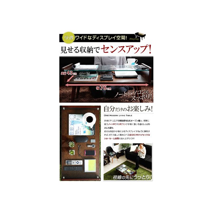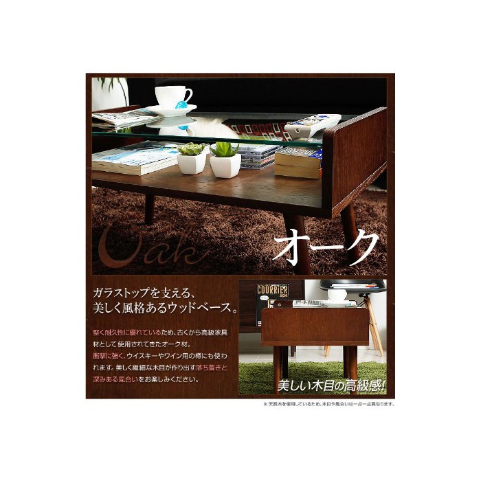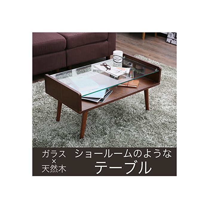 VEGA CORPORATION 테이블 로우 테이블 유리&목제 수납 선반 부착 브라운