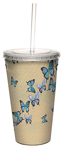 Tree-Free Greetings 35475 Shell Rummel Blue Butterflies in Flight Double-Walled Cool Cup with Reusable Straw, 16-Ounce
