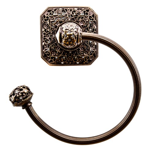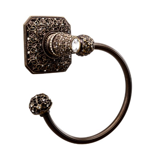 Carpe Diem Hardware 4058-3 Cab Juliane Grace Towel Ring Left Made with Swarovski Elements, Antique Brass