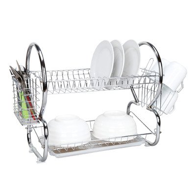 -. Title : Home Basics 2-Tier Dish Drainer, Chrome