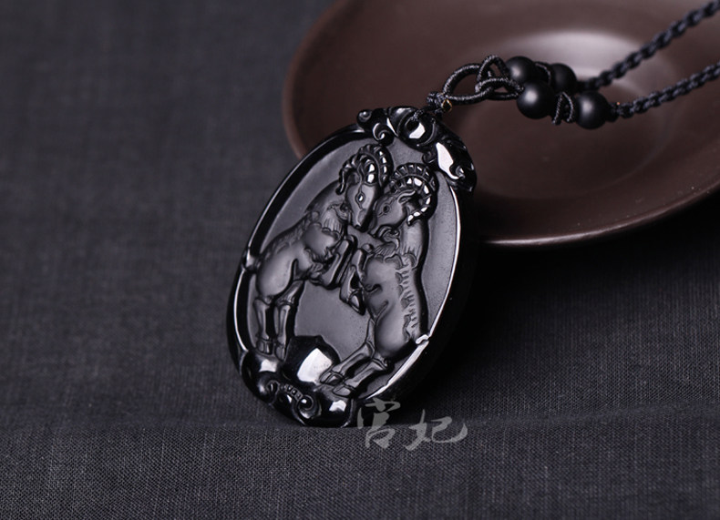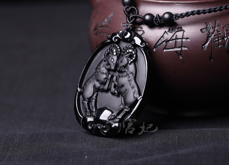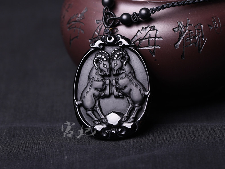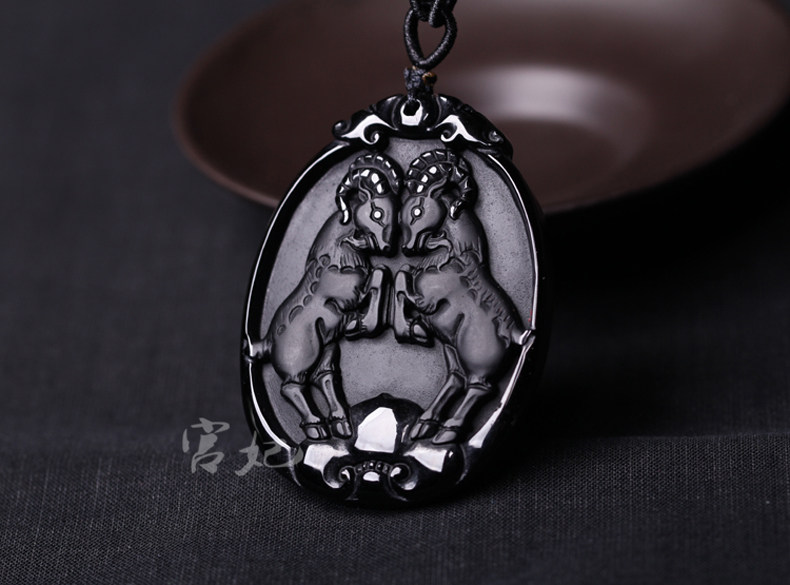 开光 属兔人吉祥物吊坠金羚守岁黑曜石项坠水晶饰品男女款