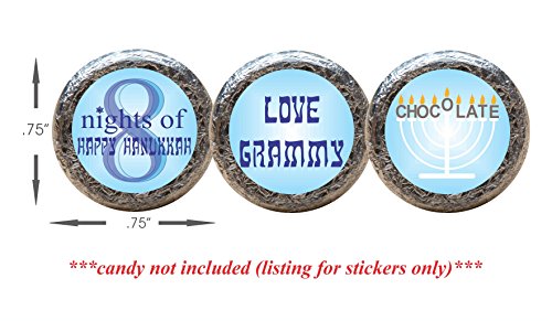 Chanukkah Holiday Stickers for the bottom of chocolate Kisses, Personalized (set of 108)(R8nites)