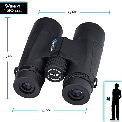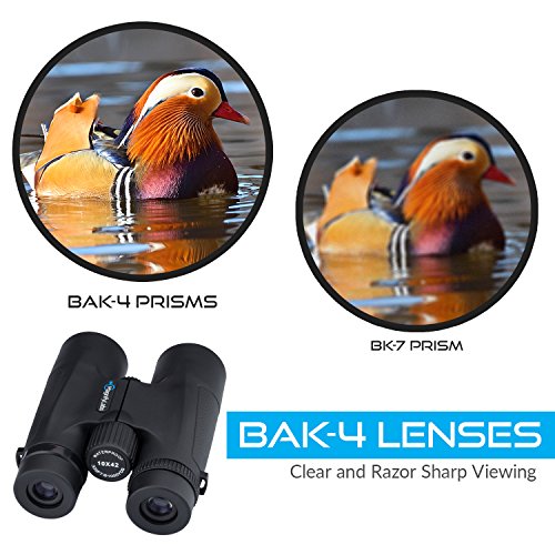 HIGH POWERED COMPACT BINOCULARS FOR ADULTS: Designed with superior BAK4 prisms and low dispersion glass, these 10x42 binoculars provide exceptional clarity, brightness and high definition images