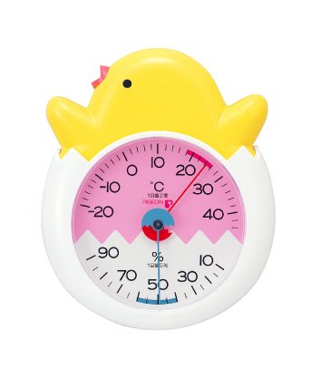 "Temperature and humidity meter (chick)" is a thermo-hygrometer with a guide line can be seen a comfortable temperature and humidity. Wall-mounted.