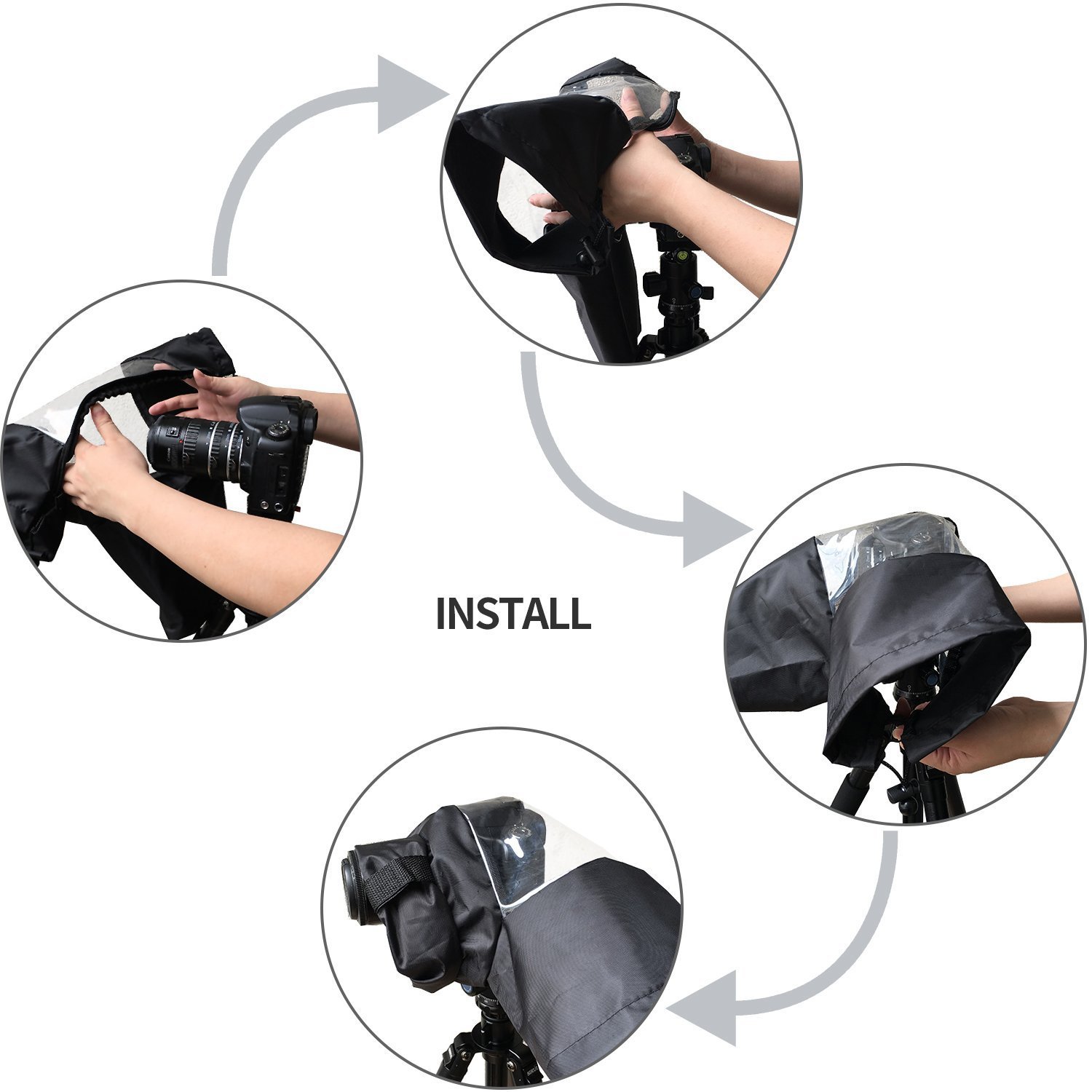 When you want to take a scenery on a rainy day, you can wear a rain jacket to protect the camera and the lens to worse weather, avoid rain, earth and sand etc.