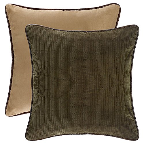 HiEnd Accents ES1006 Green Corduroy Euro Sham Reversed to Tan Suede, 27 x 27"