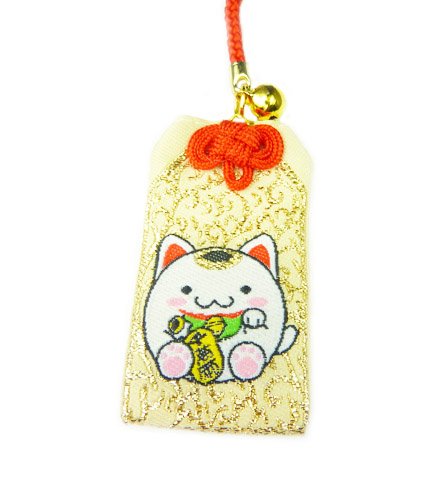 -. Binding : Kitchen -. Brand : Japanese Fun -. Color : golden -. Department : unisex-child -. EAN : 6374697168706 -. Feature : What better way to wish someone well than with a traditional Japanese charm! / This GOLD charm can wish anyone the best of luck with their own Lucky Cat! / With a strap that can be attached to your cellphone, handbag, belt buckle, just about anywhere. / This charm also comes with a small golden bell. Charm is about 2-inch. / It's a great gift to wish a friend or a loved one the best of luck. Carry an extra charm with you everyday! -. IsAdultProduct : 0 -. Label : Japanese Fun -. Manufacturer : Japanese Fun -. ProductGroup : Kitchen -. ProductTypeName : KITCHEN -. Publisher : Japanese Fun -. Studio : Japanese Fun -. Title : Japanese Luck Charm: Maneki Neko - Lucky Cat Gold