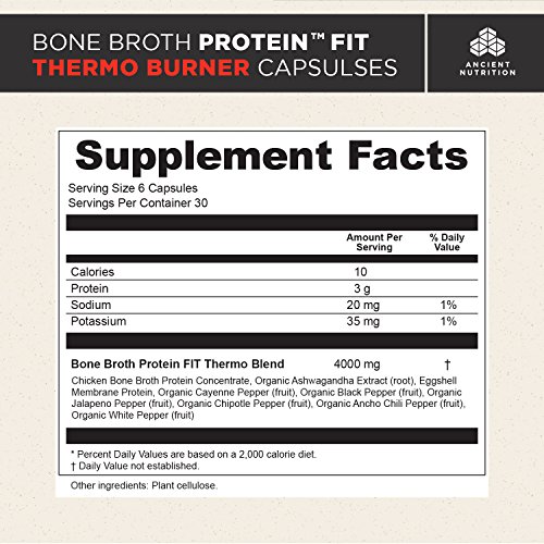 Bone Broth Protein Ancient Nutrition Protein Capsules Fit, Thermo Burner, 2.2 Pound