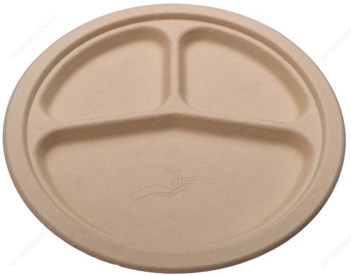 Tree Free Premium Quality Biodegradable Party Dinner Plates, 9-Inches, Triple Compartment, Bundle of 125 Plates