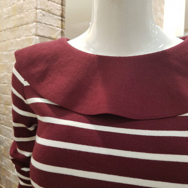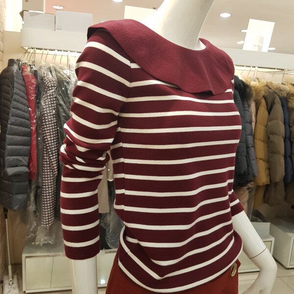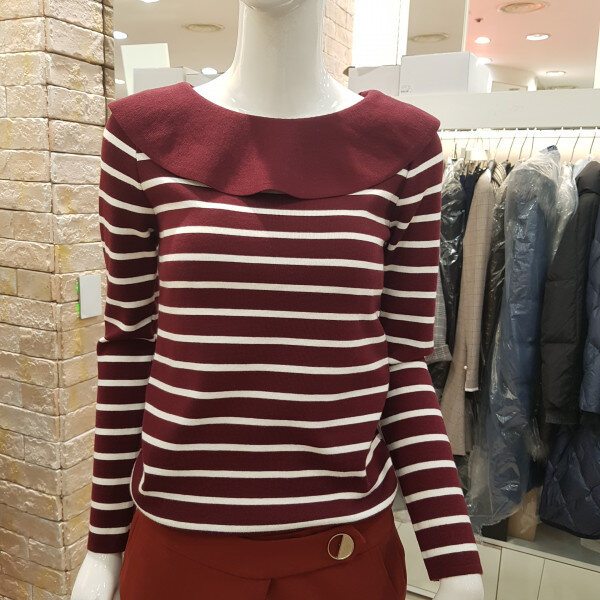 니트보다는 짱짱한티셔츠느낌의 짜임으로된 니트입니다 스커트나 바지등 다양한코디가 가능한 니트입니다