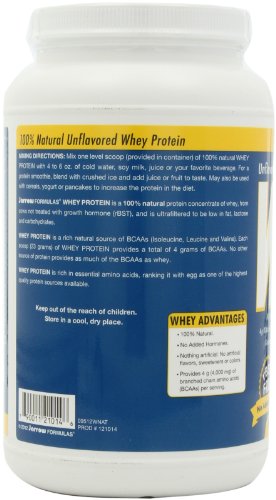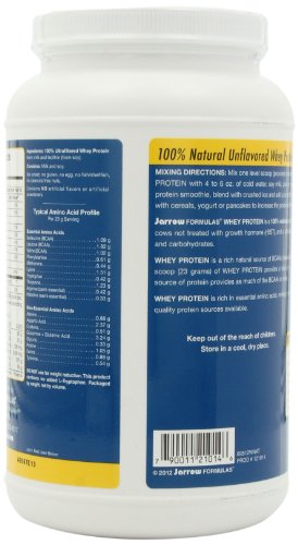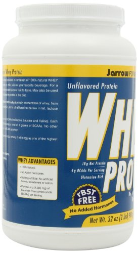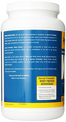 Jarrow Formulas Whey Protein is made with whey protein concentrate that is certified to be free of recombinant bovine growth hormone (rBST). It comes only from U.S. cows and is made in small batches in an environmentally conscious facility that supports local dairy farms. It uses the high quality rennet enzyme system, which concentrates protein and preserves glutamine while producing a superior end product. Elevated temperatures are avoided during the manufacturing process. High temperatures and spray-drying can lead to the degradation of glutamine, which is an important amino acid for the synthesis of muscle tissue and for immune function. Finally, the product is ultrafiltered to remove greater amounts of lactose and fat from the final product, and it is free of any artificial flavors, colors, or sweeteners.