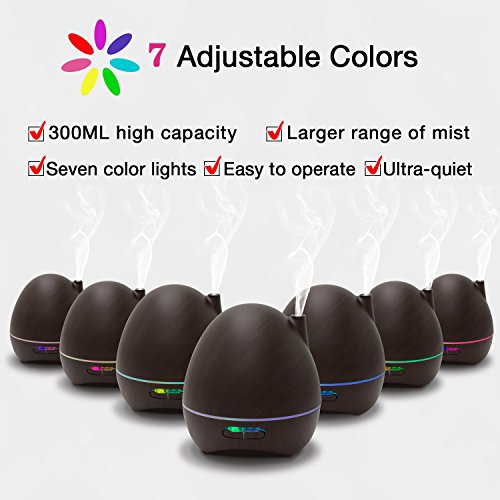 Diffuser, ESEOE 300ml Colorful Wood Gain Diffuser for Essential Oils,Aroma Essential Oil Diffuser with Adjustable Mist Mode,Auto Off Ultrasonic Diffuser for Home Office(Lasting 8-10/h)
