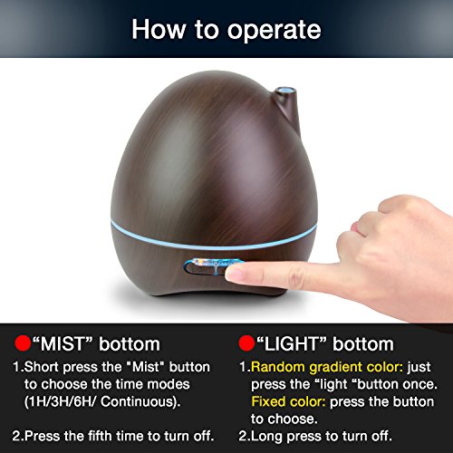 - CLEAR INSTRUCTIONS & EASY TO OPERATE--Our updated diffuser has a clear time indicator screen and you can choose four time modes using it (1 hour, 3 hours, 6 hours and continuous working mode). Seven adjustable LED lights are available for children to choose freely or to enhance your bedroom’s atmosphere.