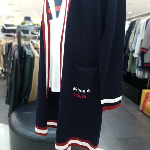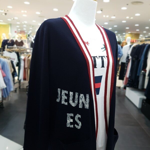 산뜻한 배색 컬러가 돋보이는 가디건 입니다 자수 레터링으로 포인트를 준상품으로 편하게 착용하기 좋은 아이템 입니다