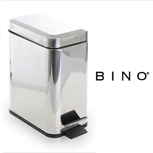 -. Binding : Kitchen -. Brand : BINO -. Feature : SILENT LID - BINO'S silent lid design features an advanced hydraulic buffer which results in a seamless, smooth and quiet slow closing lid / REMOVABLE INNER BUCKET - BINO's trash cans feature a removable inner bucket with a carrying handle that makes trash disposal easy / HANDS FREE - BINO's hands-free design includes a durable and strong foot pedal engineered to last. Hands-free operation helps prevent the spread of germs / SMALL FOOTP.R.INT - Perfect for smaller spaces such as bathrooms, laundry rooms, under desks or wherever space is limited / HIGH QUALITY STAINLESS STEEL- BINO's trash cans are made from premium grade stainless steel in colors beyond the classic stainless steel. BINO's proP.R.Iety matte finish results in a stylish and contemporary design while staying rust and fingerP.R.Int proof. -. Label : BINO -. Manufacturer : BINO -. ProductGroup : Home -. ProductTypeName : HOME -. Publisher : BINO -. Studio : BINO -. Title : BINO Stainless Steel 1.3 Gallon / 5 Liter Rectangle Step Trash Can