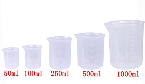 Shapenty 5 Sizes 50ml / 100ml /250ml /500ml /1000ml Capacity Clear Plastic Graduated Measuring Beaker Set Liquid Cup Container, 5PCS
