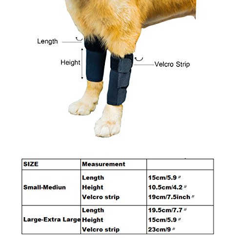 PLEASE NOTE: Depending on the breed of the dog, the sizes would vary. PLEASE MEASURE BEFORE ORDER!!Instructions&Notice : 1.This Dog Hock Joint brace can be used before and after surgery, chronic arthritis, Ligament Injuries and Arthritis.