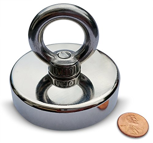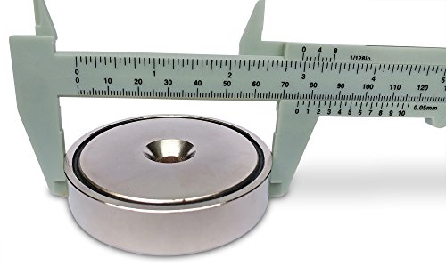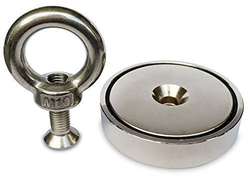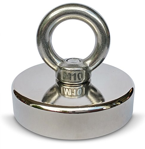Brute Magnetics Round Neodymium Magnet with Countersunk Hole and Eyebolt, 350 LBS Pulling Force, 2.95" Diameter