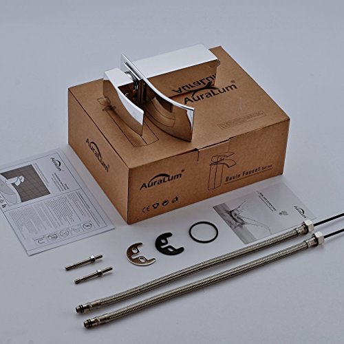 Auralum Stainless Steel Single Handle Waterfall Bathroom Vanity Sink Faucet, Brushed Nickel Solid Brass Basin Mixer Tap